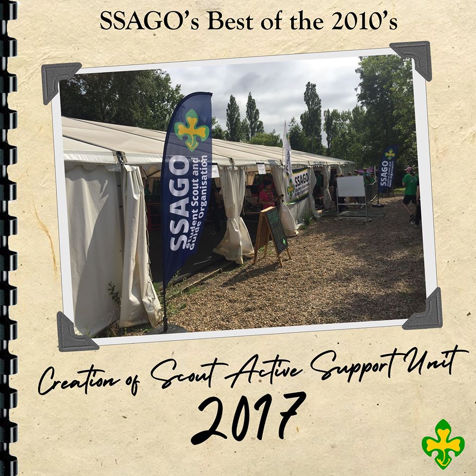 Although SSAGO has been attending events for many years, it was 2017 when the idea of an official Scout Active Support Unit (SASU) was introduced. Since then the SASU has evolved in to SSAGO Support, the team which frequently attends big events to help where needed. Becoming a SASU was big step in SSAGO history as it further strengthened our relationship with Scouting and Guiding, proving yet again how SSAGO can benefit our parent organisations whilst also having a good time!